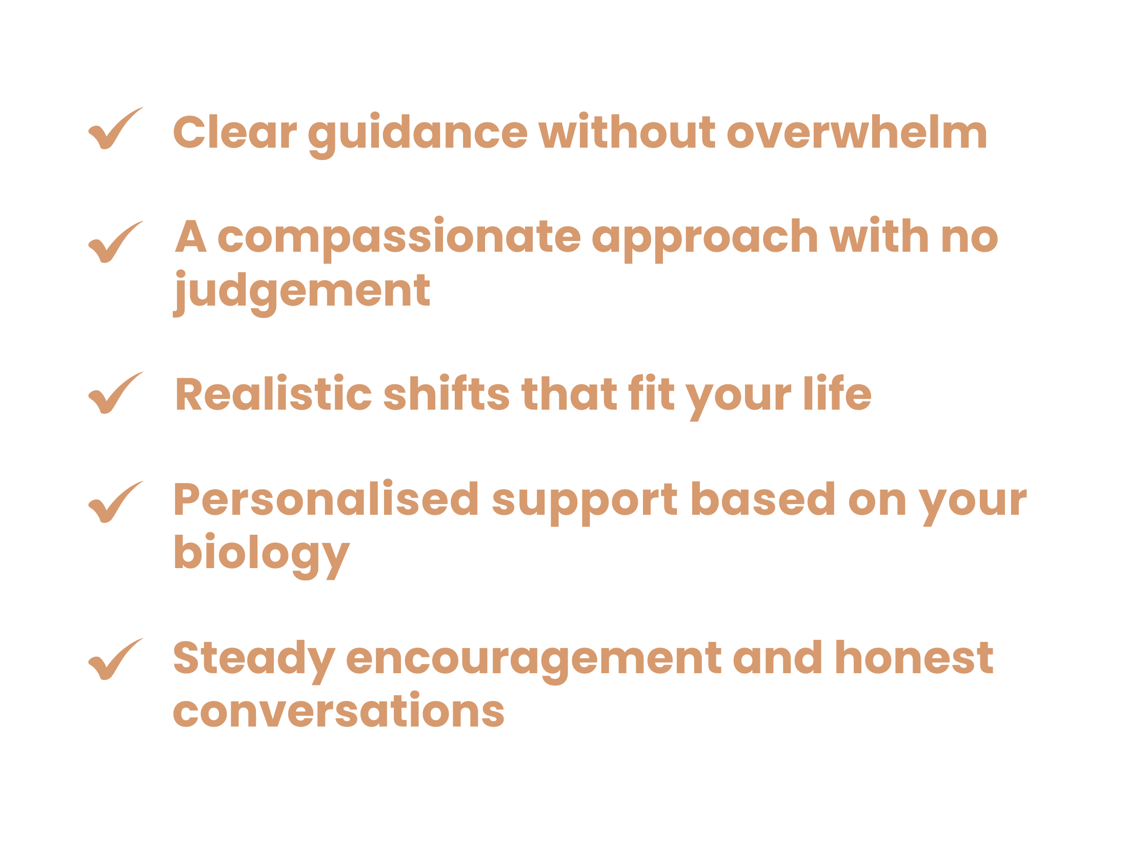 I’ll never ask you to follow a fad diet, to push through exhaustion, or to count every calorie.