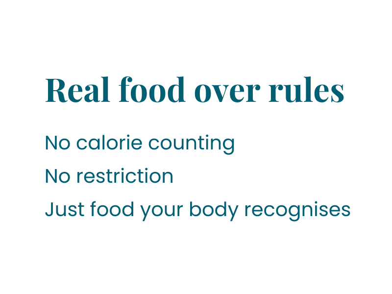 I’ll never ask you to follow a restrictive diet, push through exhaustion, or count every calorie. Instead, I’ll help you understand your body, rebuild trust with your metabolism, and create habits that support you for life.